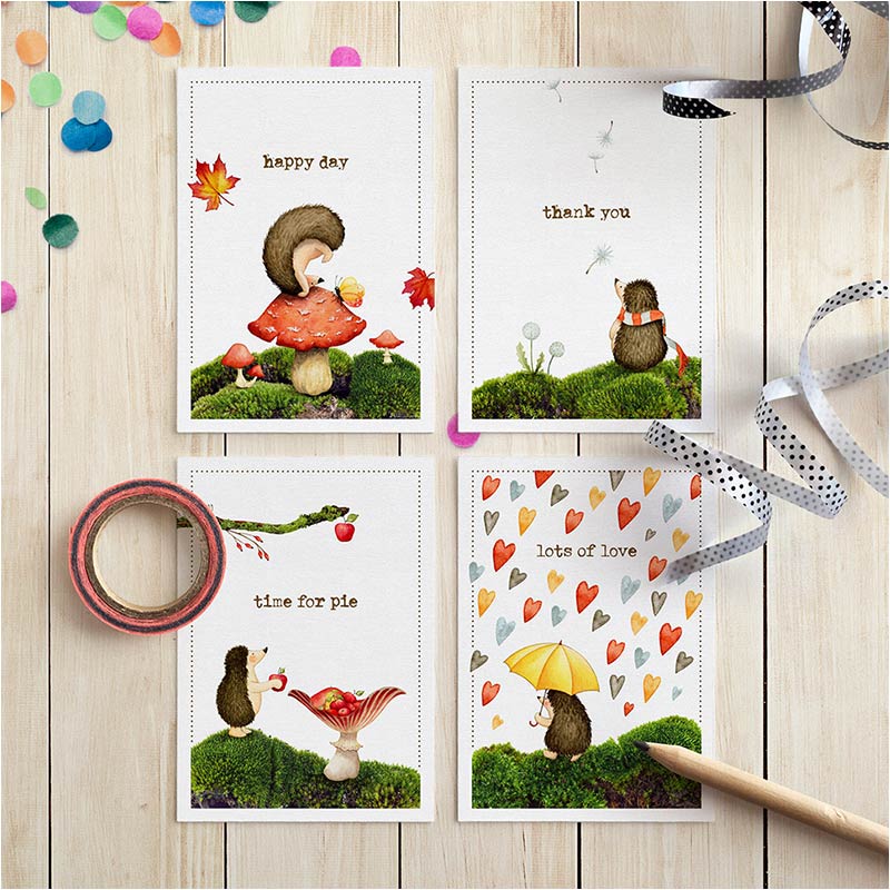 Cadeaukaartjes set van 4 ‘Enthousiaste egels’