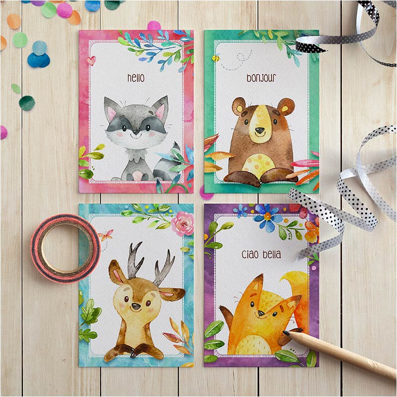 Het formaat van de cadeaukaartjes is A7 (74 x 105 mm). Goed om te weten is dat de we voor onze kaarten altijd kiezen voor mooie materialen. Omdat het karton enkelzijdig is gestreken, krijg je een mooie matte en wat gladdere voorzijde en een minder gladde achterzijde. En daarmee zijn ze dus perfect te beschrijven!