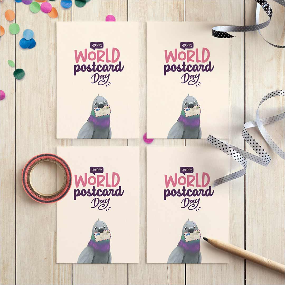 Cadeaukaartjes set van 4 ‘World Postcard Day’ duif
