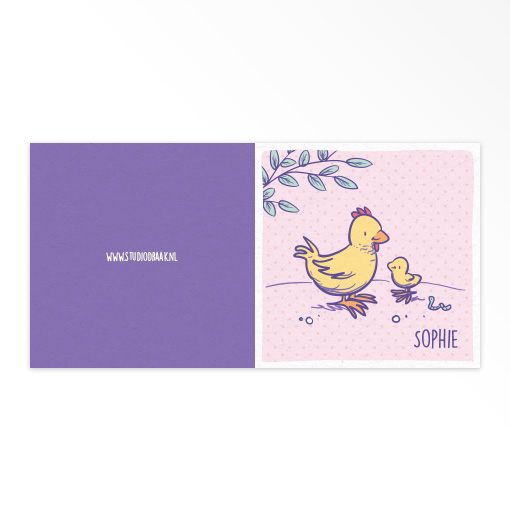 Dit vrolijke geboortekaartje (11 x 11 cm) met het schattige kuikentje is helemaal klaar voor het voorjaar. De leuke stippen en zachte kleuren maken het kaartje extra lief. De volledige gegevens van jullie kleine en eventueel een gedichtje staan aan de binnenzijde. We drukken op hoogwaardig papier dat met zorg is uitgekozen.