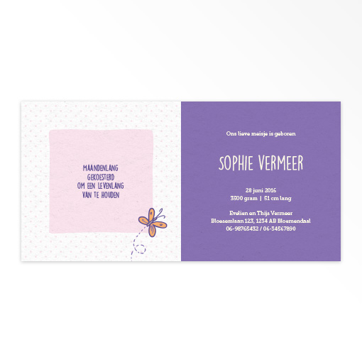 Geboortekaartjes gevouwen ‘Lentekriebels’
