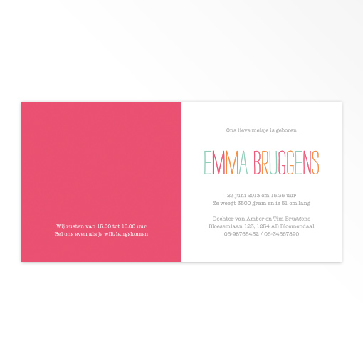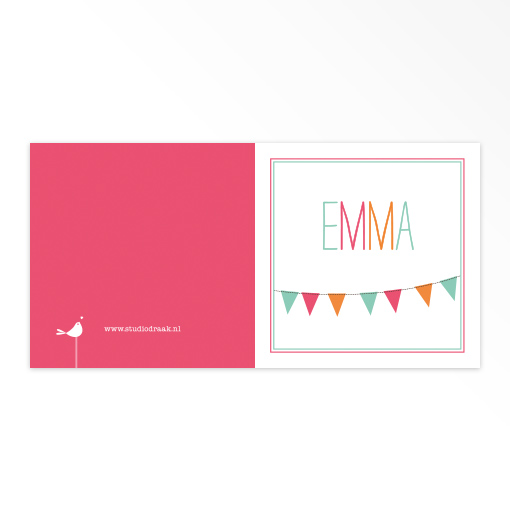 Als een proefkaartje in de smaak valt verzorgen we graag een gepersonaliseerde opmaak waarin we de – voorlopige – gegevens verwerken. Dat voorbeeld versturen we als PDF per e-mail. Zo werken we samen toe naar een fijngeslepen ontwerp, waarin we na de geboorte alleen nog de laatste gegevens hoeven te verwerken. Tegen die tijd sturen we nogmaals een PDF ter controle, waarna we zo snel mogelijk het drukproces opstarten. Onze drukkerij doet altijd z’n uiterste best het drukwerk dezelfde werkdag al verzendklaar te maken, afhankelijk van het moment van aanleveren. Bij vragen helpen we graag: info@studiodraak.nl of kijk eens bij veelgestelde vragen.