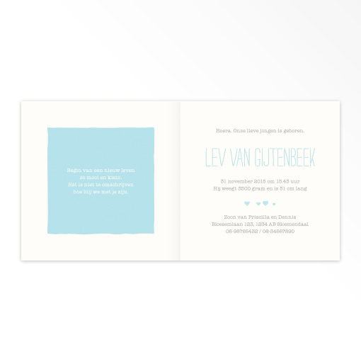 Als een proefkaartje in de smaak valt verzorgen we graag een gepersonaliseerde opmaak waarin we de – voorlopige – gegevens verwerken. Dat voorbeeld versturen we als PDF per e-mail. Zo werken we samen toe naar een fijngeslepen ontwerp, waarin we na de geboorte alleen nog de laatste gegevens hoeven te verwerken. Tegen die tijd sturen we nogmaals een PDF ter controle, waarna we zo snel mogelijk het drukproces opstarten. Onze drukkerij doet altijd z’n uiterste best het drukwerk dezelfde werkdag al verzendklaar te maken, afhankelijk van het moment van aanleveren. Bij vragen helpen we graag: info@studiodraak.nl of kijk eens bij veelgestelde vragen.