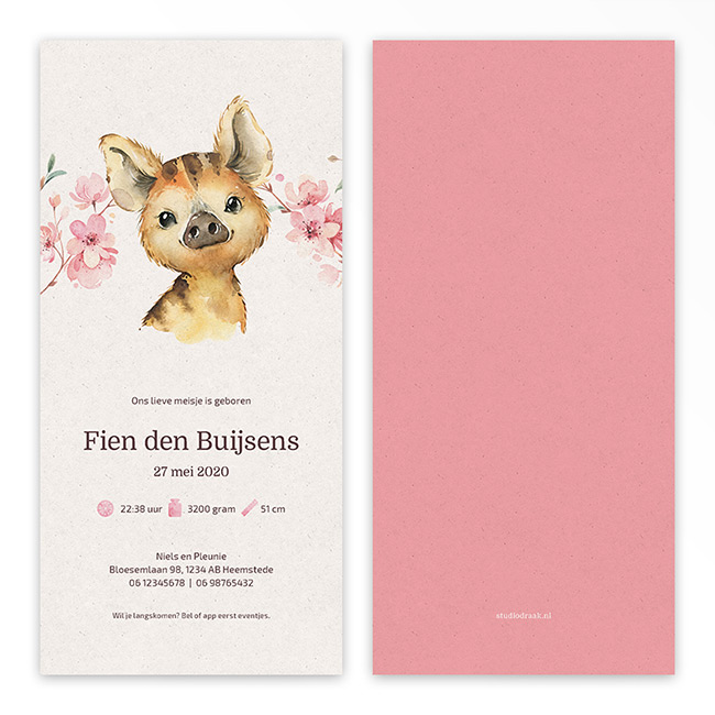 Als een proefkaartje in de smaak valt verzorgen we graag een gepersonaliseerde opmaak waarin we de – voorlopige – gegevens verwerken. Dat voorbeeld versturen we als PDF per e-mail. Zo werken we samen toe naar een fijngeslepen ontwerp, waarin we na de geboorte alleen nog de laatste gegevens hoeven te verwerken. Tegen die tijd sturen we nogmaals een PDF ter controle, waarna we zo snel mogelijk het drukproces opstarten. Onze drukkerij doet altijd z’n uiterste best het drukwerk dezelfde werkdag al verzendklaar te maken, afhankelijk van het moment van aanleveren. Bij vragen helpen we graag: info@studiodraak.nl of kijk eens bij veelgestelde vragen.