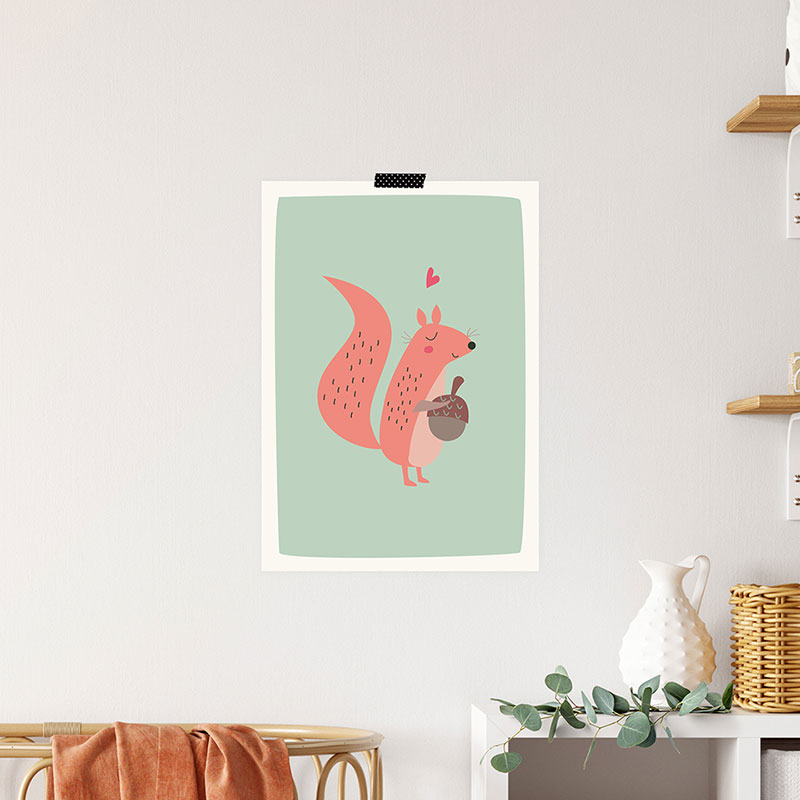 Deze kleurrijke A4-poster (210 x 297 mm) met de gezellige eekhoorn is om verliefd op te worden. Leuk op de muur van elke kinderkamer! Gewoon met washi tape of extra fraai in een lijstje. We drukken op heel stevig papier en alle posters worden met zorg verpakt en verzonden 🙂