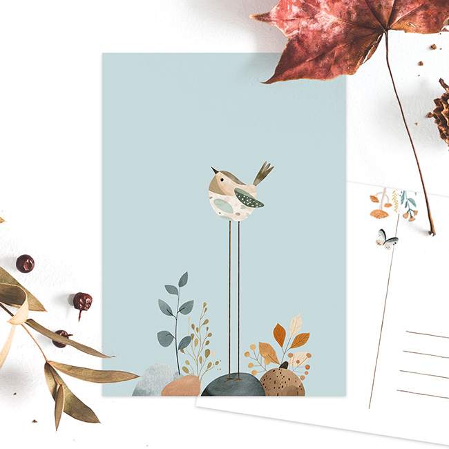 Deze sfeervolle kaart (105 x 148 mm) met het lieve vogeltje en de fijne kleuren is om verliefd op te worden. Een feest om te versturen, maar ook leuk op de muur van een kinderkamer of stoere loft. We drukken op hoogwaardig sulfaatkarton dat met zorg is uitgekozen. Ook verkrijgbaar als extra voordelige set van vier unieke ontwerpen! We bezuinigen nooit op drukwerk en kiezen altijd voor de beste materialen 🙂