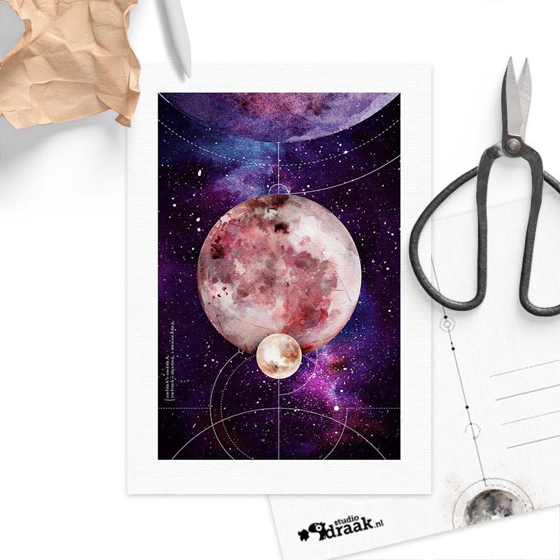 Deze indrukwekkende postkaart (105 x 148 mm) met de kleurrijke kosmos is een feest om te versturen. Ook leuk als decoratie in een loft of kinderkamer, gewoon los of als complete serie van vier naast elkaar. De sterren en het contrast maken de kaart extra bijzonder. Aan de vormgeving van de achterzijde besteden we minstens zoveel aandacht. We drukken op hoogwaardig sulfaatkarton dat met zorg is uitgekozen.