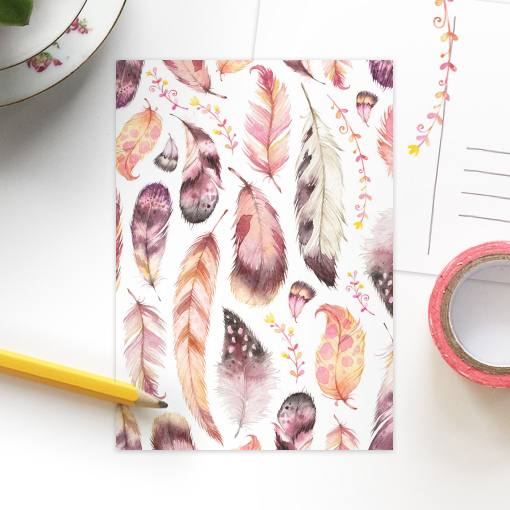 Deze schattige ansichtkaart (105 x 148 mm) met de zachte veertjes is om van te houden. De gedetailleerde schilderingen en zachte kleuren maken de kaart extra lief. Leuk op de muur van een stoere loft of kinderkamer, gewoon met een stukje masking tape. Ook te beschrijven en versturen én perfect als kaart bij een cadeau. We drukken op hoogwaardig sulfaatkarton dat met zorg is uitgekozen.