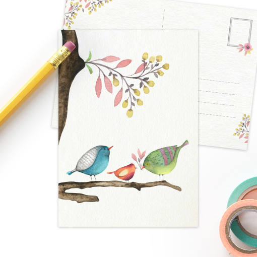 Deze postkaart (105 x 148 mm) is leuk om op de muur te plakken van een kinderkamer of stoere loft. Los of als serie en gewoon met een stukje masking tape. Ze zijn natuurlijk ook te beschrijven en versturen als kaart. De eigenwijze vogeltjes maken de kaarten helemaal schattig. We drukken op hoogwaardig sulfaatkarton dat met zorg is uitgekozen.