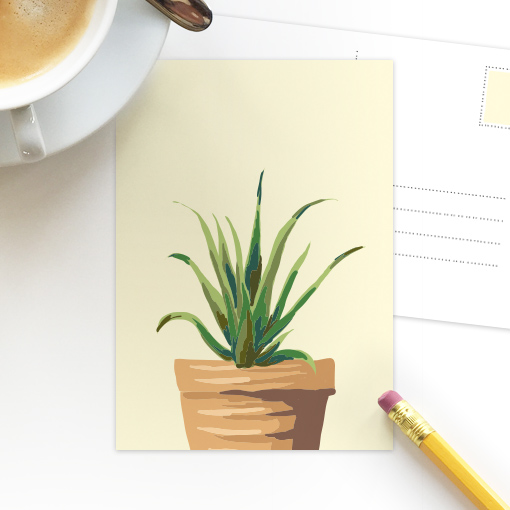 Deze ansichtkaart (105 x 148 mm) met de leuke vetplant is stoer aan de muur van elke loft. Ook gaaf in een schattig lijstje op een kinderkamer. Hij is natuurlijk ook te beschrijven en te versturen als normale kaart. Met de verschillende pasteltinten helemaal compleet als serie van vier. We drukken op hoogwaardig sulfaatkarton dat met zorg is uitgekozen.