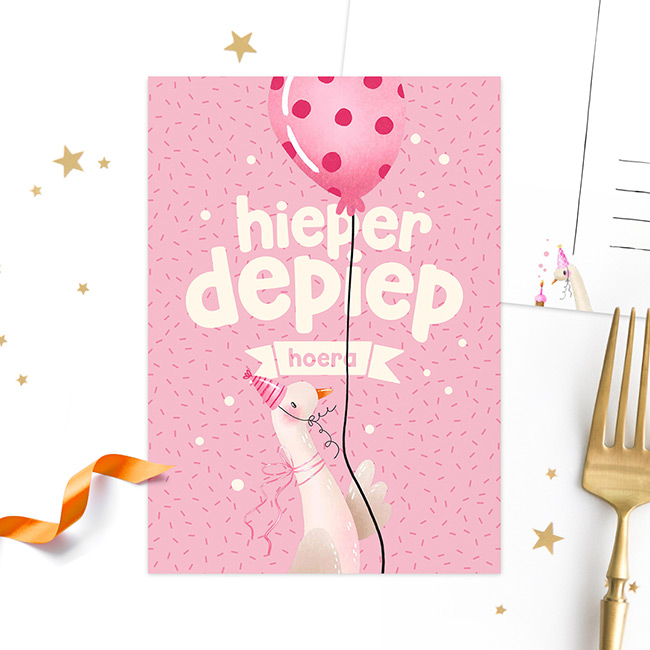 Postkaart ‘Hieperdepiepkuiken’ roze