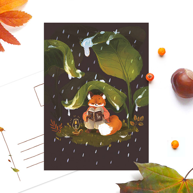Postkaart ‘Ik hou van de herfst’ regendruppels