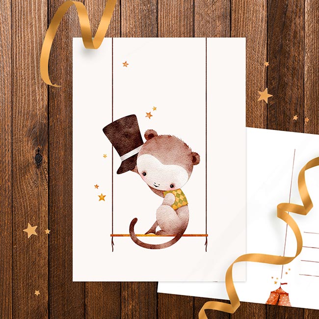 Postkaart ‘In het circus’ aapje