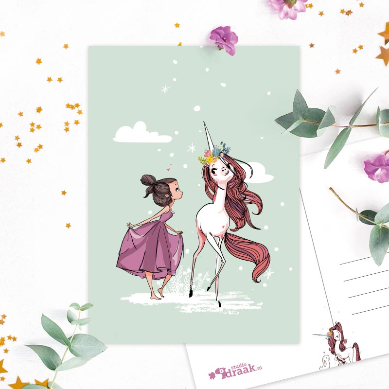 Deze magische postkaart (105 x 148 mm) met de kleurrijke eenhoorn is om verliefd op te worden. Een feest om te versturen, maar ook leuk op de muur van een kinderkamer of stoere loft. We drukken op hoogwaardig sulfaatkarton dat met zorg is uitgekozen. Ook verkrijgbaar als extra voordelige set van vier unieke ontwerpen! We bezuinigen nooit op drukwerk en kiezen altijd voor de beste materialen 🙂
