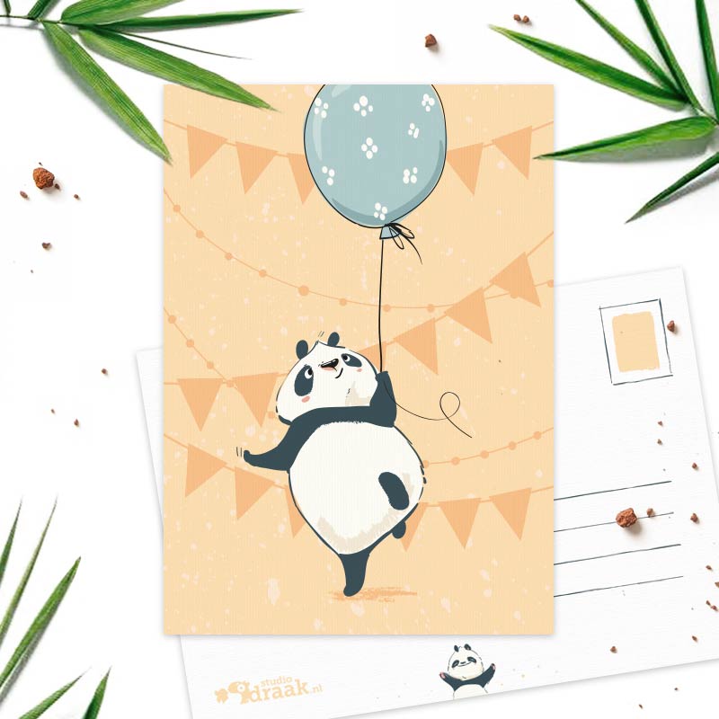 Deze feestelijke postkaart (105 x 148 mm) met de lieve panda is perfect als er iets is te vieren. Een feest om te versturen, maar ook leuk op de muur van een kinderkamer of stoere loft. We drukken op hoogwaardig sulfaatkarton dat met zorg is uitgekozen. Ook éxtra voordelig verkrijgbaar als serie van vier unieke ontwerpen.