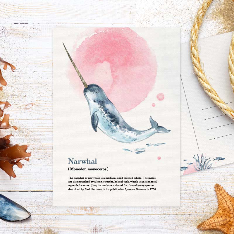 Postkaart ‘Reuzen van de zee’ Narwhal