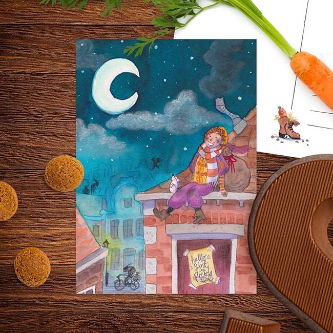 Deze sfeervolle kaart (105 x 148 mm) met de Pietjes op de daken is om verliefd op te worden. Een feest om te versturen, maar ook leuk in de schoen met een groet van Sinterklaas erop. We drukken op hoogwaardig sulfaatkarton dat met zorg is uitgekozen. Ook verkrijgbaar als extra voordelige set van vier unieke ontwerpen! We bezuinigen nooit op drukwerk en kiezen altijd voor de beste materialen 🙂