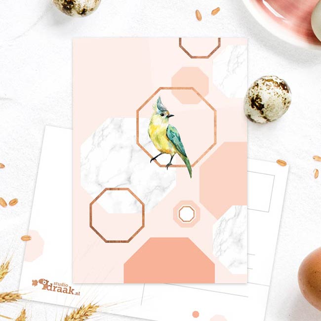 Deze lieve postkaart (105 x 148 mm) met ’t vriendelijke vogeltje en de bijzondere figuren is een feest om te versturen. Maar ook leuk op de muur van een stoere loft of kinderkamer. We drukken op hoogwaardig sulfaatkarton dat met zorg is uitgekozen. Ook éxtra voordelig verkrijgbaar als serie van vier unieke ontwerpen.