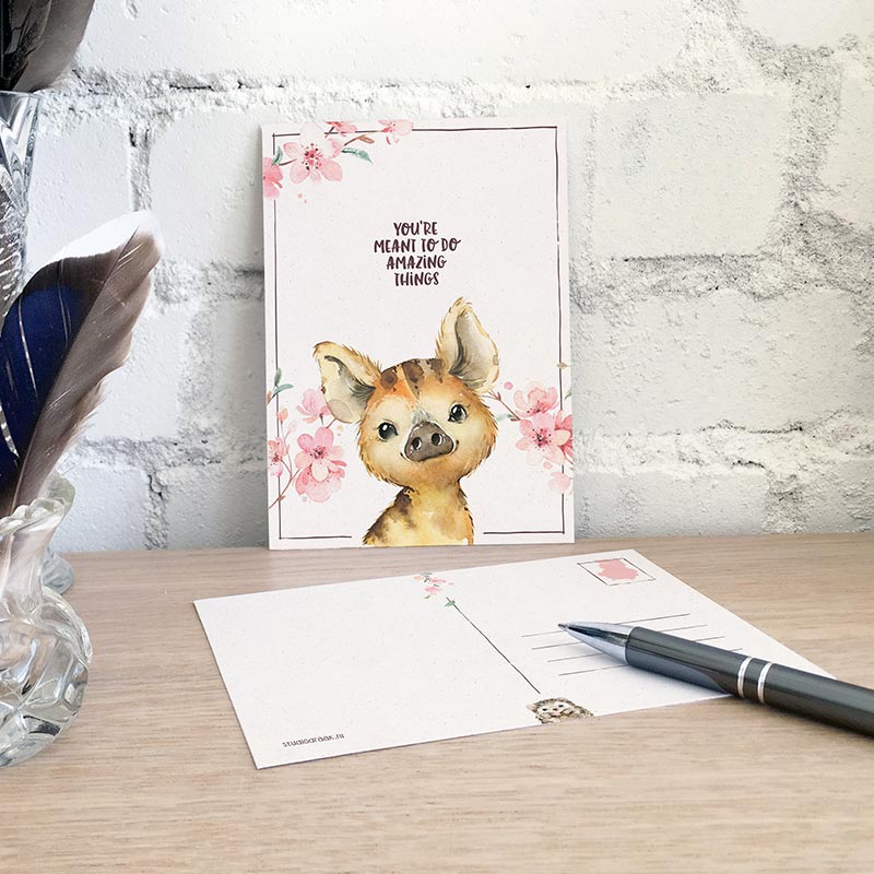 Deze fleurige set postkaarten (105 x 148 mm) met de boerenbeestjes is om verliefd op te worden. Een feest om te versturen, maar ook leuk op de muur van een kinderkamer of stoere loft. We drukken op hoogwaardig sulfaatkarton dat met zorg is uitgekozen. Ook verkrijgbaar als losse kaarten! We bezuinigen nooit op drukwerk en kiezen altijd voor de beste materialen ?