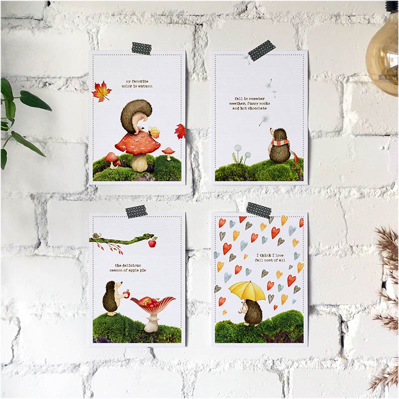 Postkaarten set van 4 ‘Enthousiaste egels’