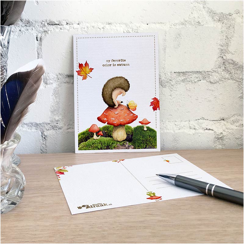 Het formaat is A6 (105×148 mm), de standaard maat voor postkaarten. Goed om te weten is dat de we voor onze kaarten altijd kiezen voor mooie materialen. Omdat het karton enkelzijdig is gestreken, krijg je een mooie matte en wat gladdere voorzijde en een minder gladde achterzijde. En daarmee zijn ze dus perfect te beschrijven!