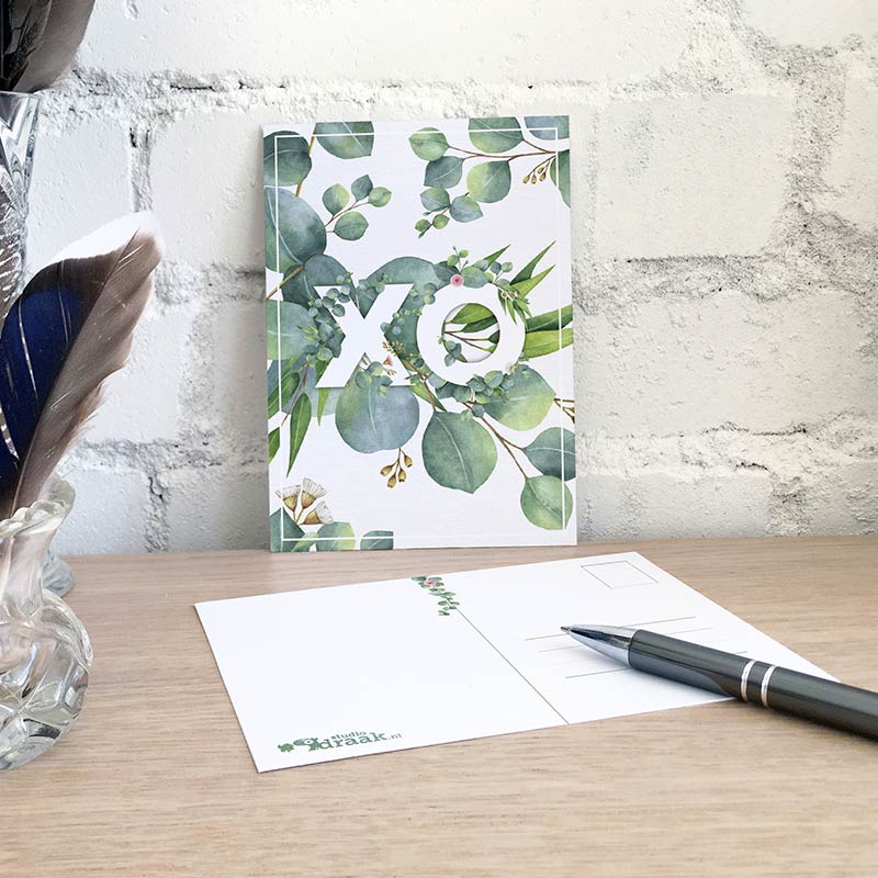 Het formaat is A6 (105×148 mm), de standaard maat voor postkaarten. Goed om te weten is dat de we voor onze kaarten altijd kiezen voor mooie materialen. Omdat het karton enkelzijdig is gestreken, krijg je een mooie matte en wat gladdere voorzijde en een minder gladde achterzijde. En daarmee zijn ze dus perfect te beschrijven!