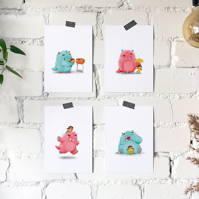Postkaarten set van 4 ‘Monster en Moos’