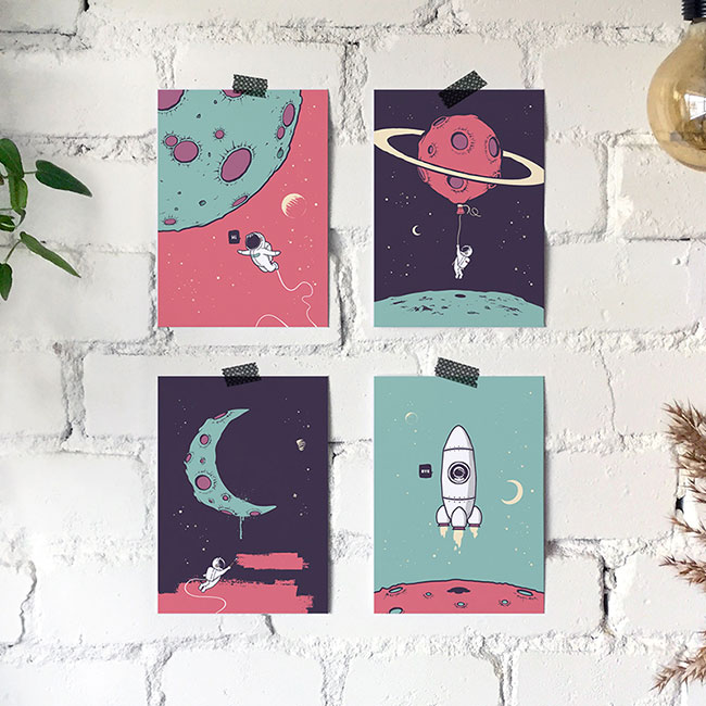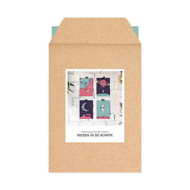 Postkaarten set van 4 ‘Reizen in de ruimte’