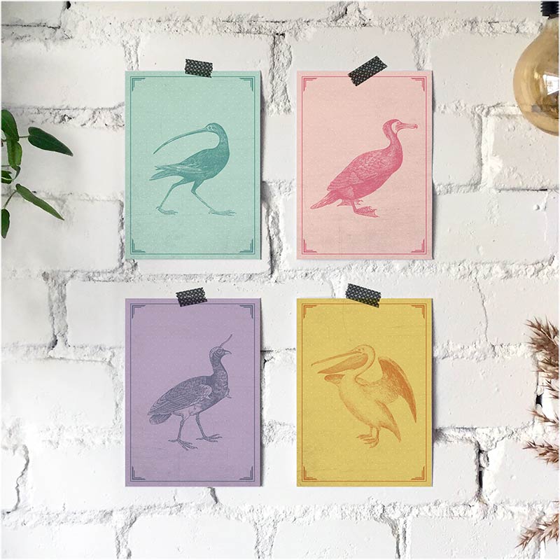 Deze retro set kaarten (105 x 148 mm) met de vreemde vogels is om verliefd op te worden. Een feest om te versturen, maar ook leuk op de muur van een kinderkamer of stoere loft. We drukken op hoogwaardig sulfaatkarton dat met zorg is uitgekozen. Ook verkrijgbaar als losse kaarten! We bezuinigen nooit op drukwerk en kiezen altijd voor de beste materialen ?