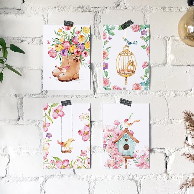 Deze kleurrijke set kaarten (105 x 148 mm) met de vogels en bloemen is om verliefd op te worden. Een feest om te versturen, maar ook leuk op de muur van een kinderkamer of stoere loft. We drukken op hoogwaardig sulfaatkarton dat met zorg is uitgekozen. Ook verkrijgbaar als losse kaarten! We bezuinigen nooit op drukwerk en kiezen altijd voor de beste materialen ?