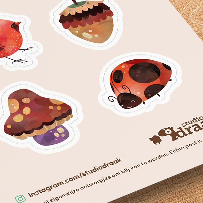 Een A6 stickervel met 6 contourgesneden stickers. De bijzonder illustraties en kleuren maken een snailmail pakketje éxtra bijzonder. We produceren deze stickers op duurzaam mat 58UM polyester met sterke kleefkracht. Waterbestendig, vuilafstotend en geschikt voor intensief gebruik.
