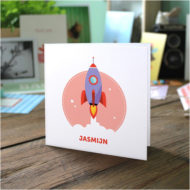 Gevouwen geboortekaartjes ‘Kekke raket’